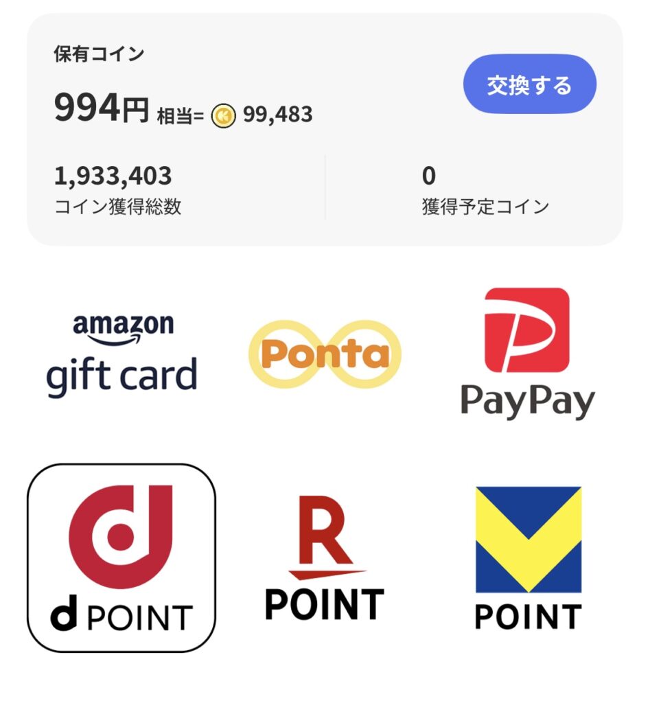 他にもアンケートに答えたり、特定のミッションでポイントももらえるので、とても生活に密着した内容です。